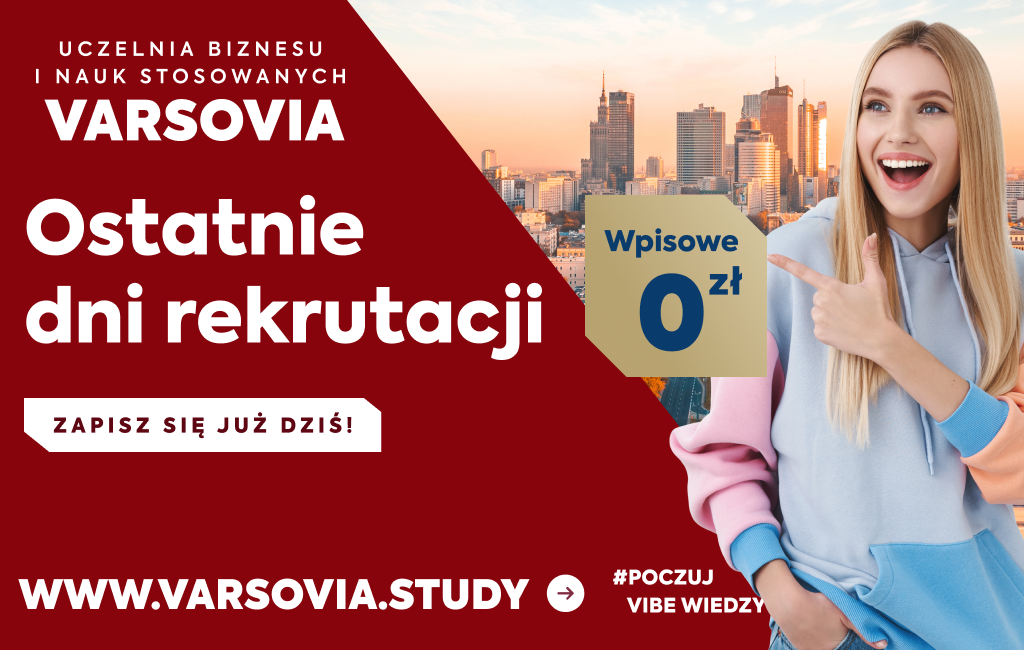 Trwają ostatnie dni rekrutacji na studia w Uczelni Varsovia. To idealny moment dla osób, które marzą o nowoczesnej i praktycznej edukacji oraz chcą rozwinąć swoje kompetencje zawodowe. Wpisowe 0 zł!